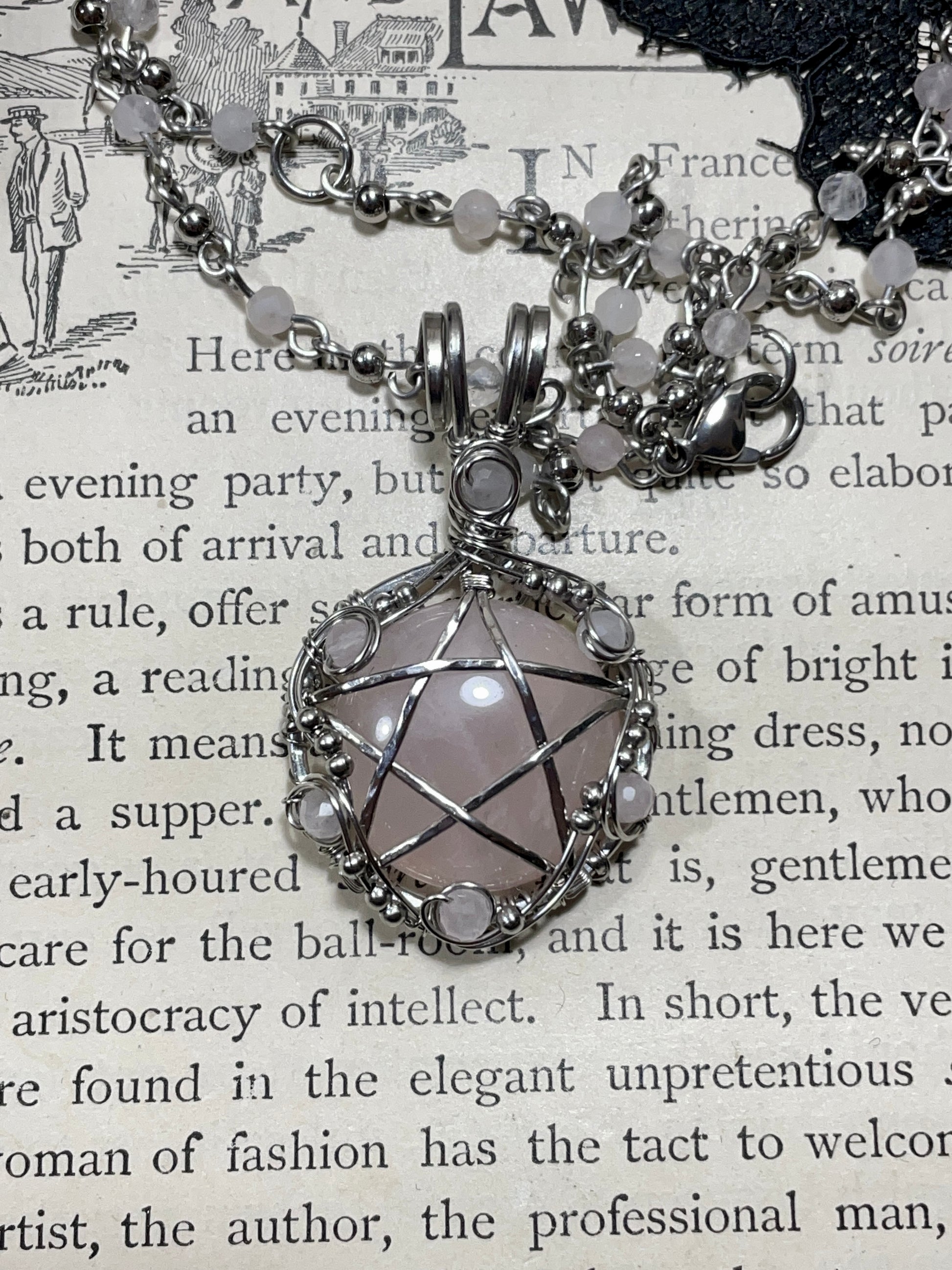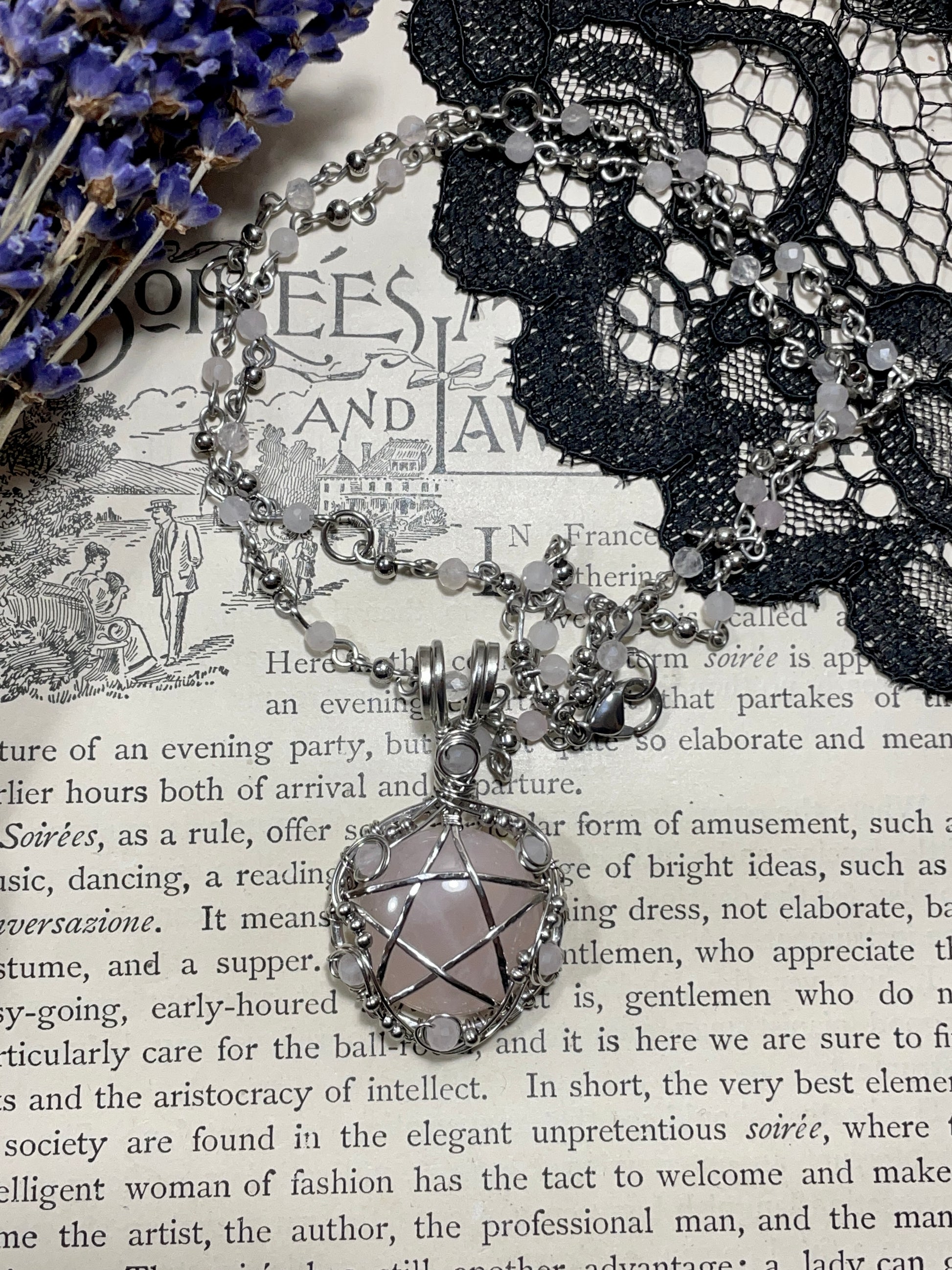 Rose Quartz Pentacle Pendant in Stainless Steel