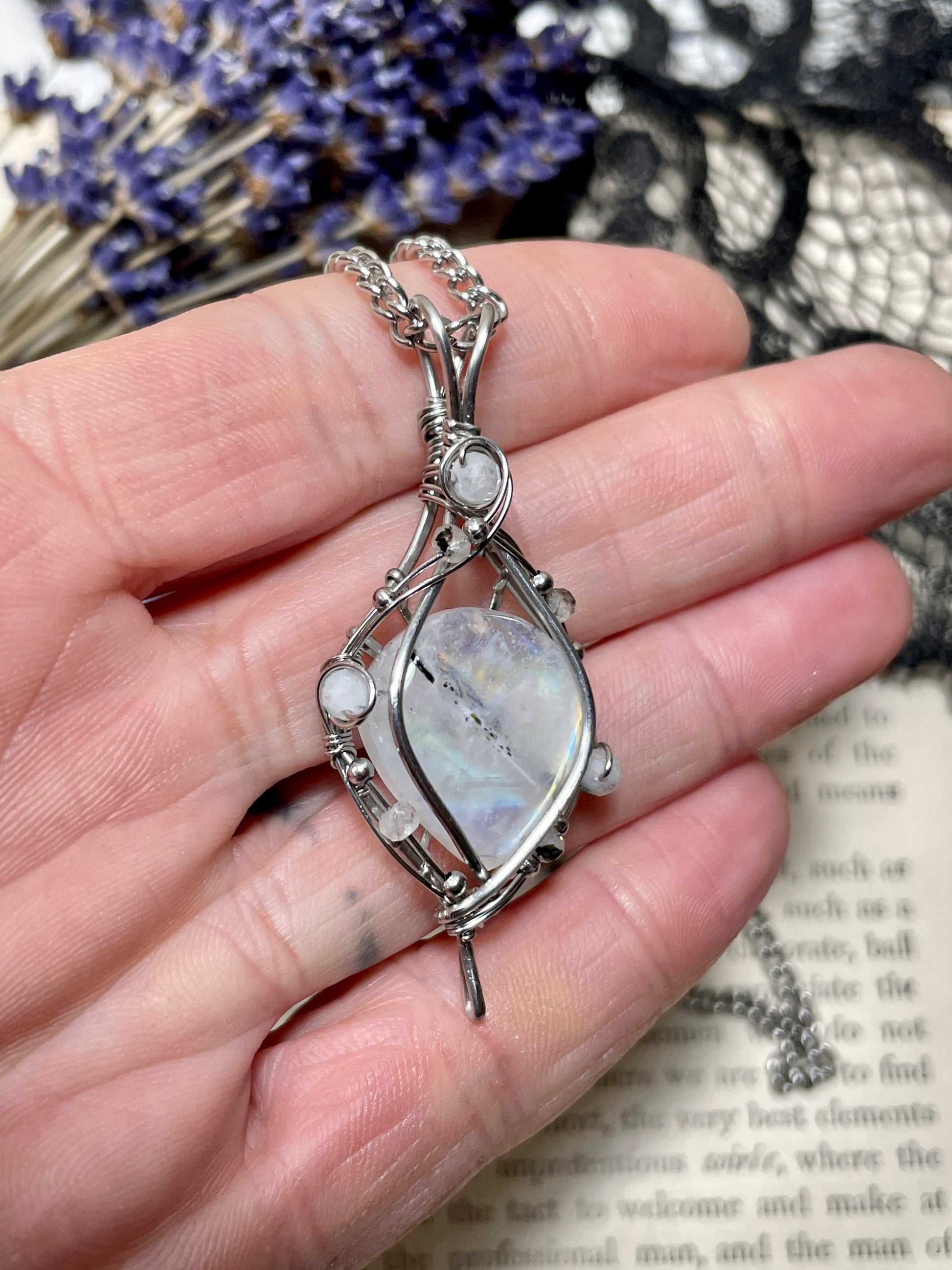 Moonstone (Rainbow Moonstone) Pendant in Stainless Steel