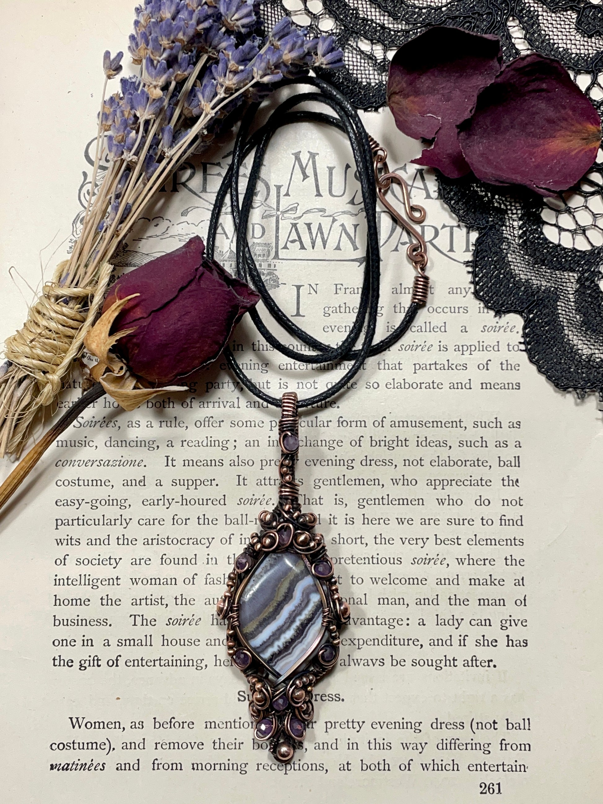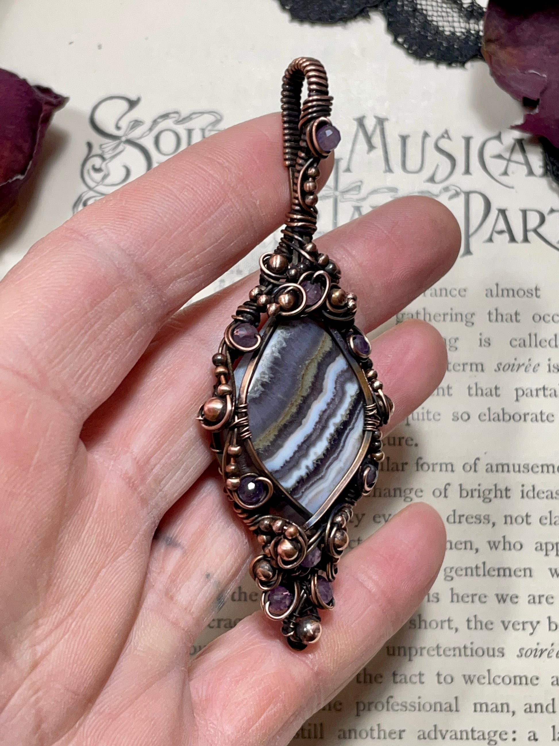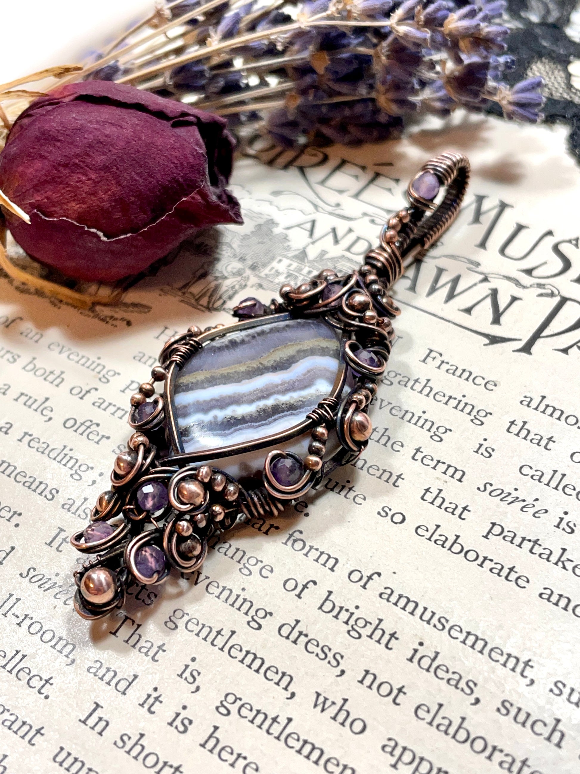 Amethyst Lace Agate Pendant in Copper