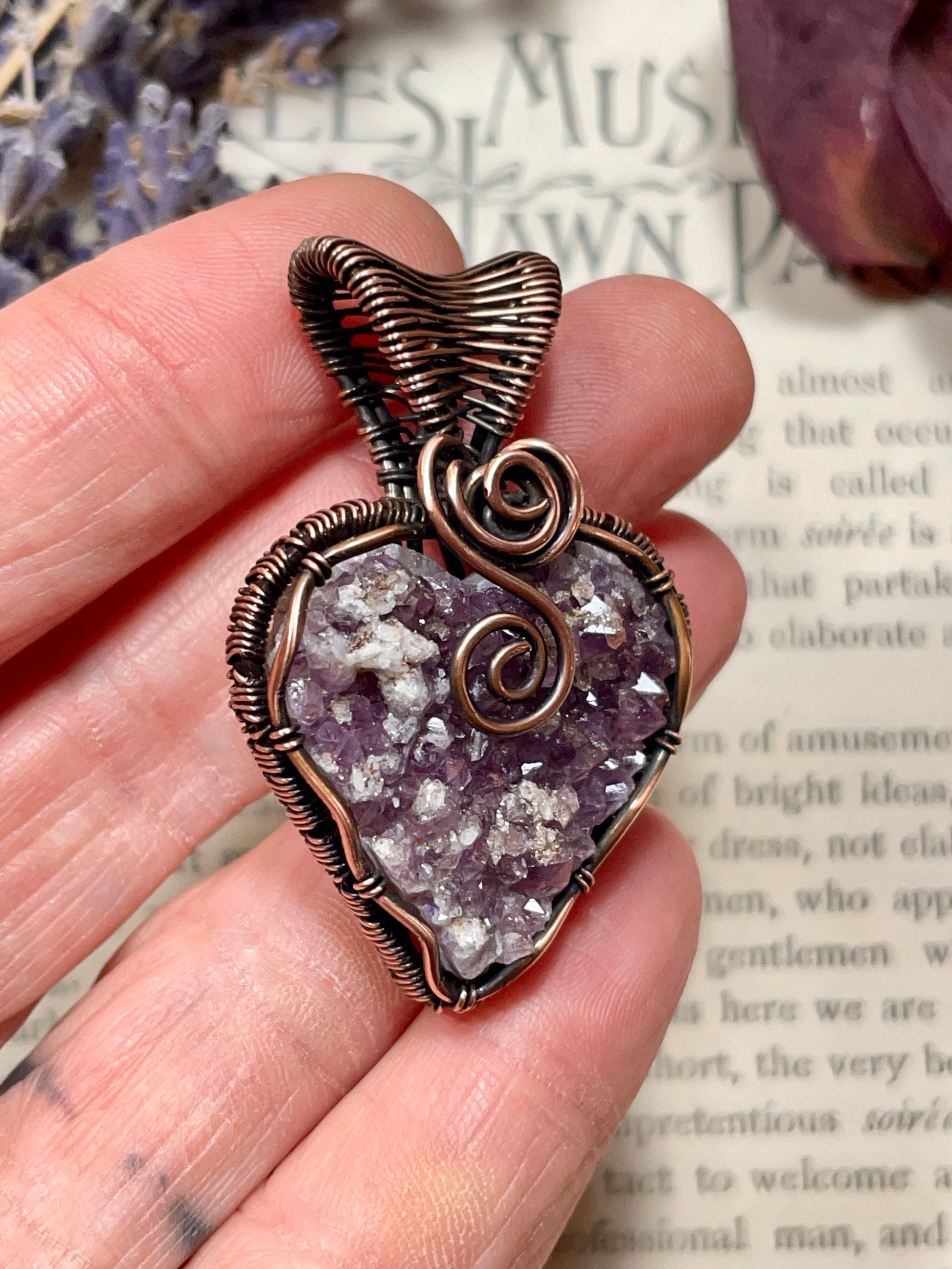 Amethyst Heart (Thunder Bay, Ontario Amethyst Cluster) in Copper
