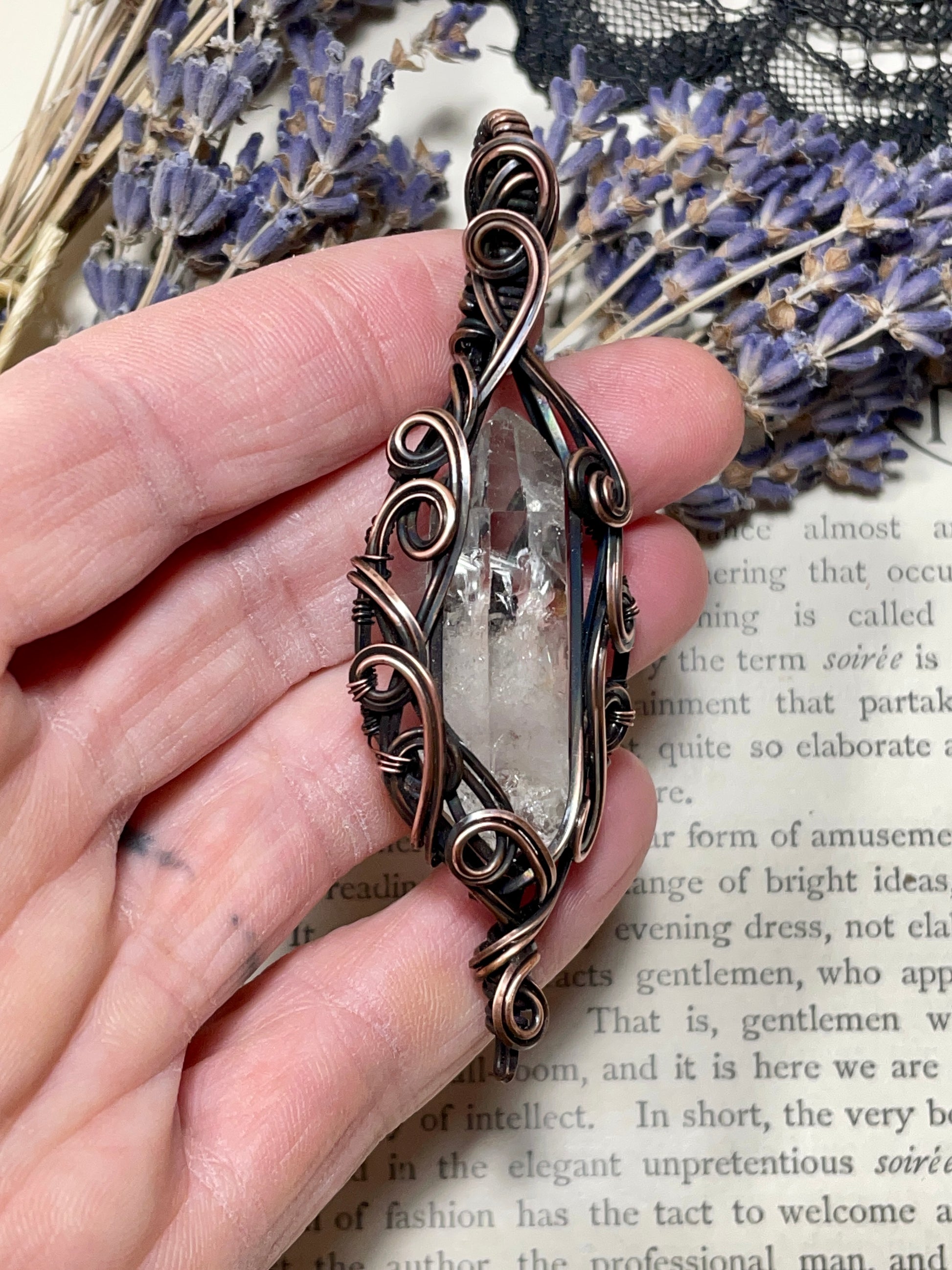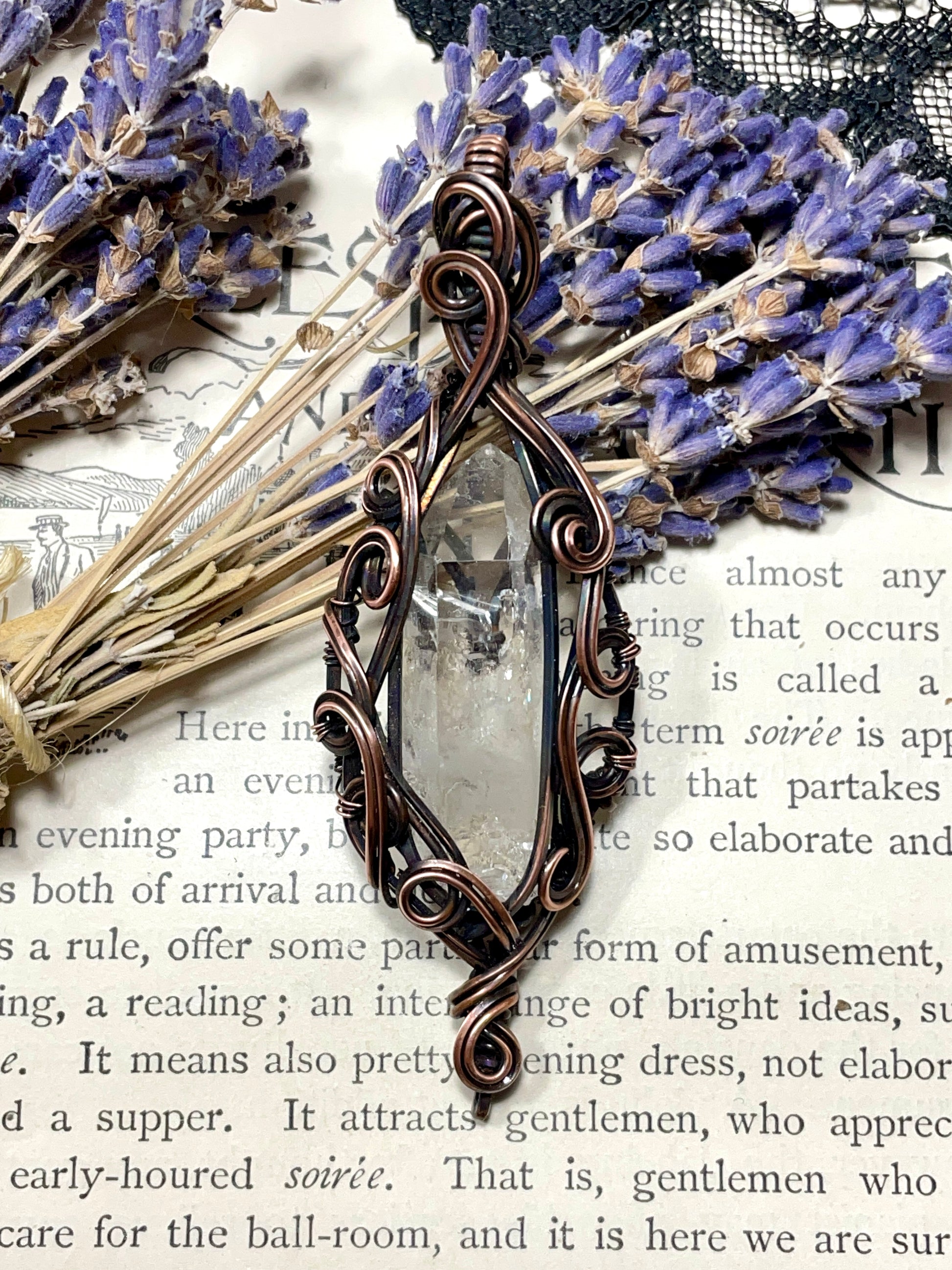 Quartz Crystal Point (Clear Quartz Crystal )Pendant in Copper #3
