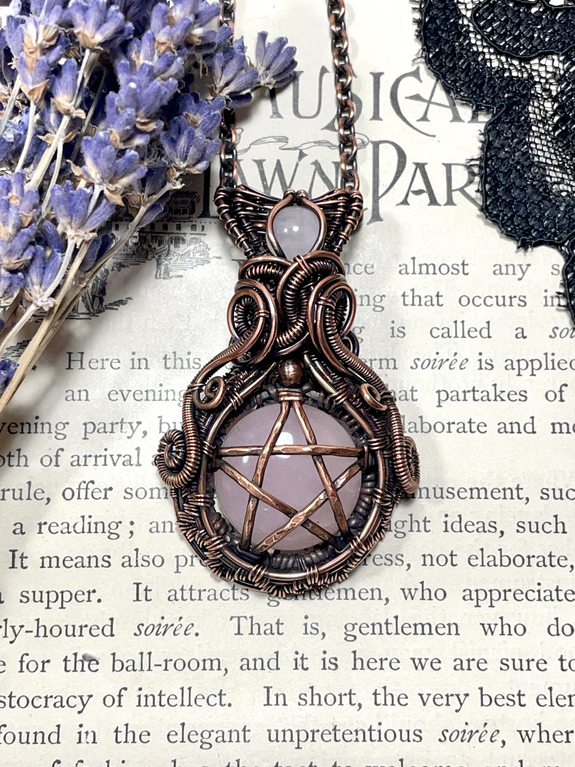 Rose Quartz Pentacle Pendant in Copper